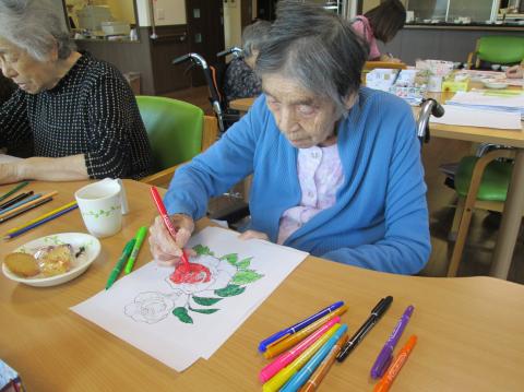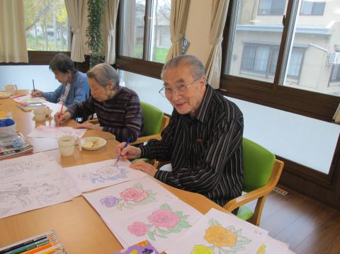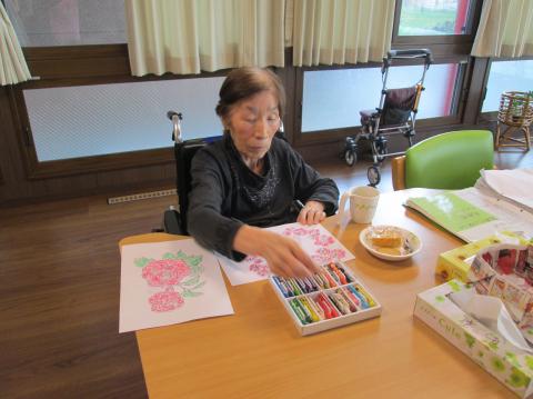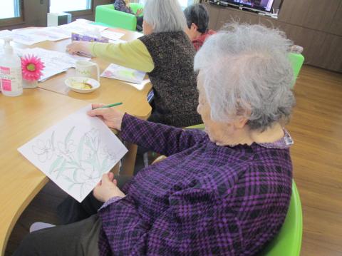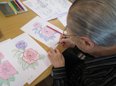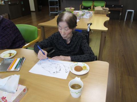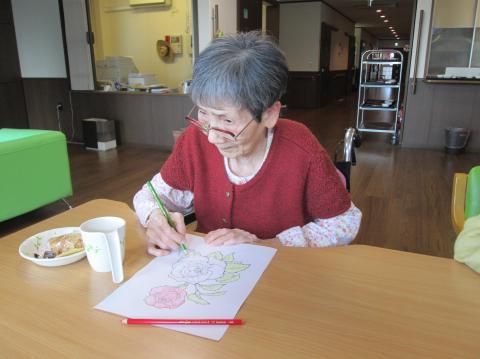 今日は、ぬり絵をしています