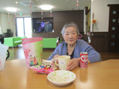 ひなあられと甘酒を飲みながら